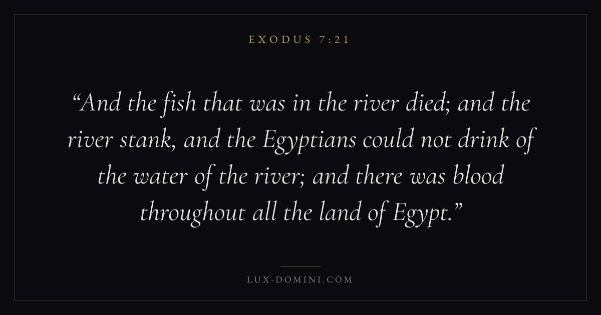 And the fish that was in the river died; and the river stank, and the Egyptians could not drink of the water of the river; and there was blood throughout all the land of Egypt.