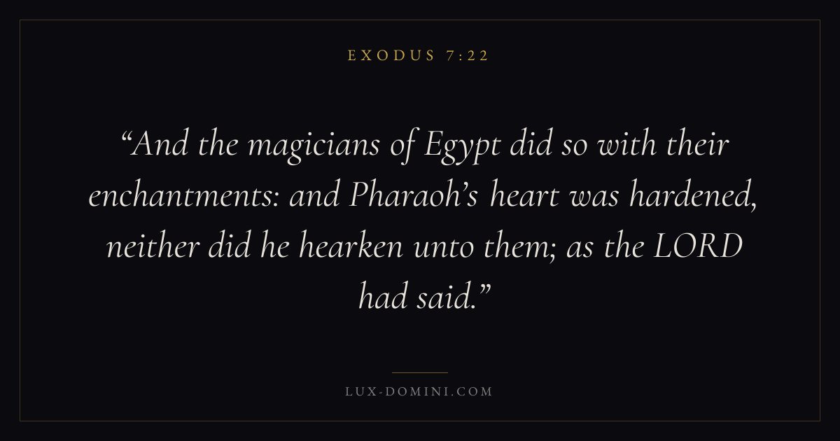 And the magicians of Egypt did so with their enchantments: and Pharaoh’s heart was hardened, neither did he hearken unto them; as the LORD had said.