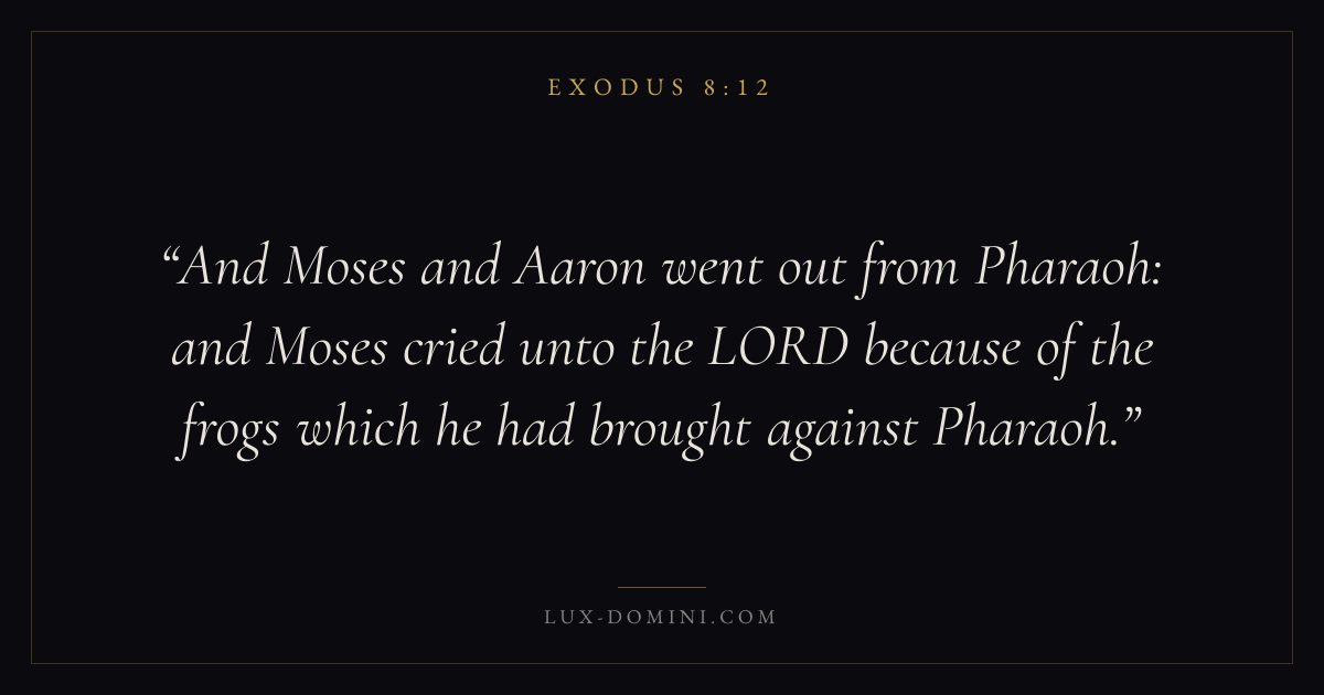 And Moses and Aaron went out from Pharaoh: and Moses cried unto the LORD because of the frogs which he had brought against Pharaoh.