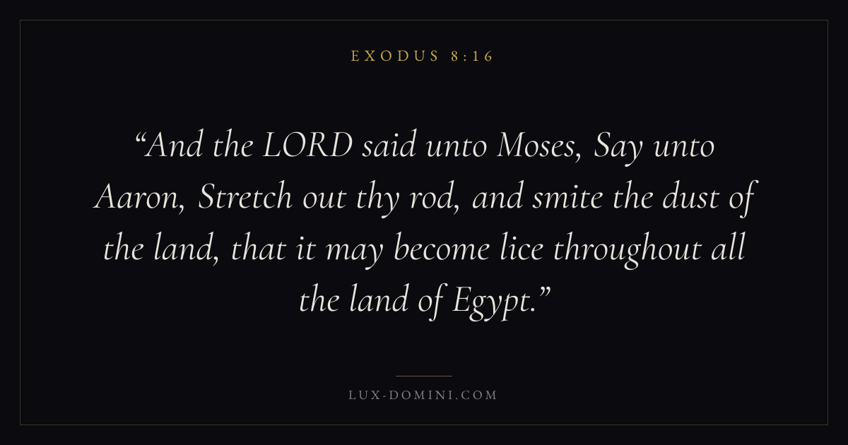 And the LORD said unto Moses, Say unto Aaron, Stretch out thy rod, and smite the dust of the land, that it may become lice throughout all the land of Egypt.
