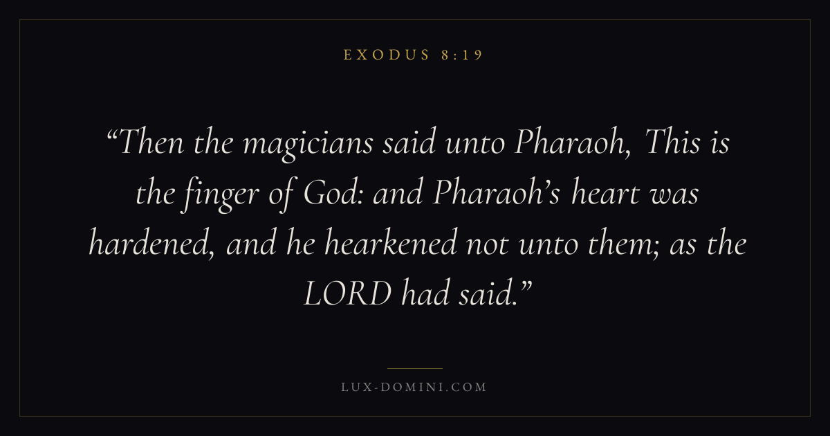 Then the magicians said unto Pharaoh, This is the finger of God: and Pharaoh’s heart was hardened, and he hearkened not unto them; as the LORD had said.