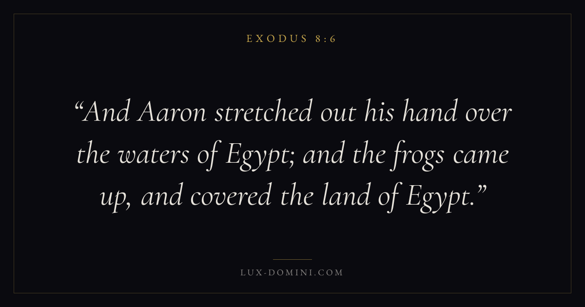 And Aaron stretched out his hand over the waters of Egypt; and the frogs came up, and covered the land of Egypt.