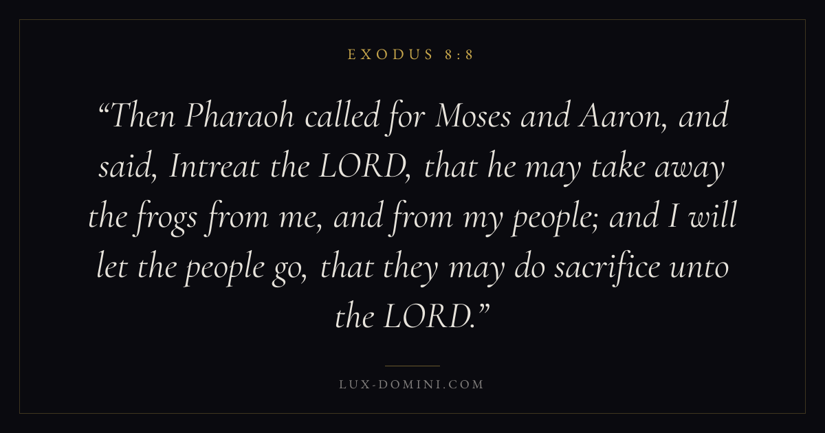 Then Pharaoh called for Moses and Aaron, and said, Intreat the LORD, that he may take away the frogs from me, and from my people; and I will let the people go, that they may do sacrifice unto the LORD.