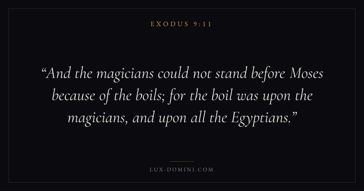 And the magicians could not stand before Moses because of the boils; for the boil was upon the magicians, and upon all the Egyptians.