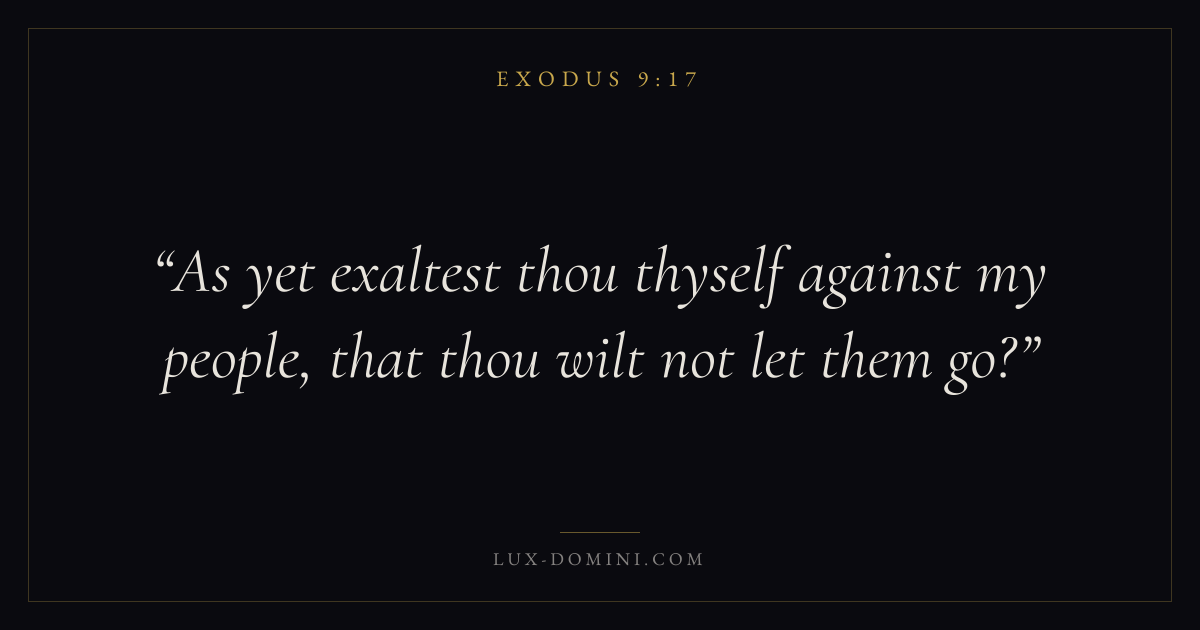 As yet exaltest thou thyself against my people, that thou wilt not let them go?