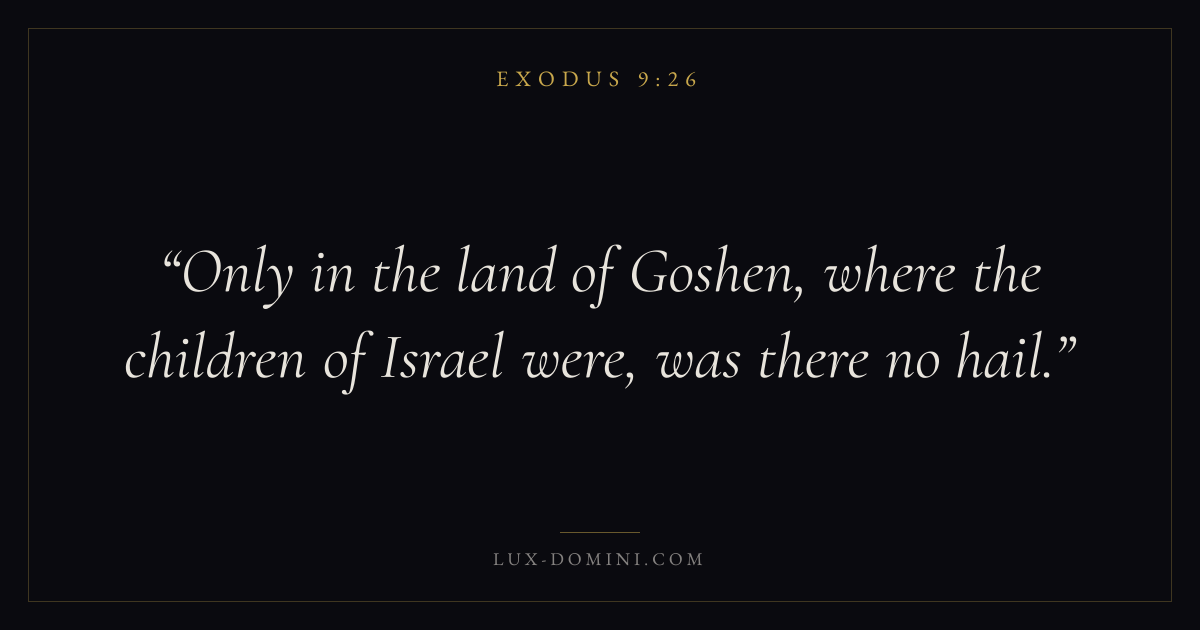 Only in the land of Goshen, where the children of Israel were, was there no hail.