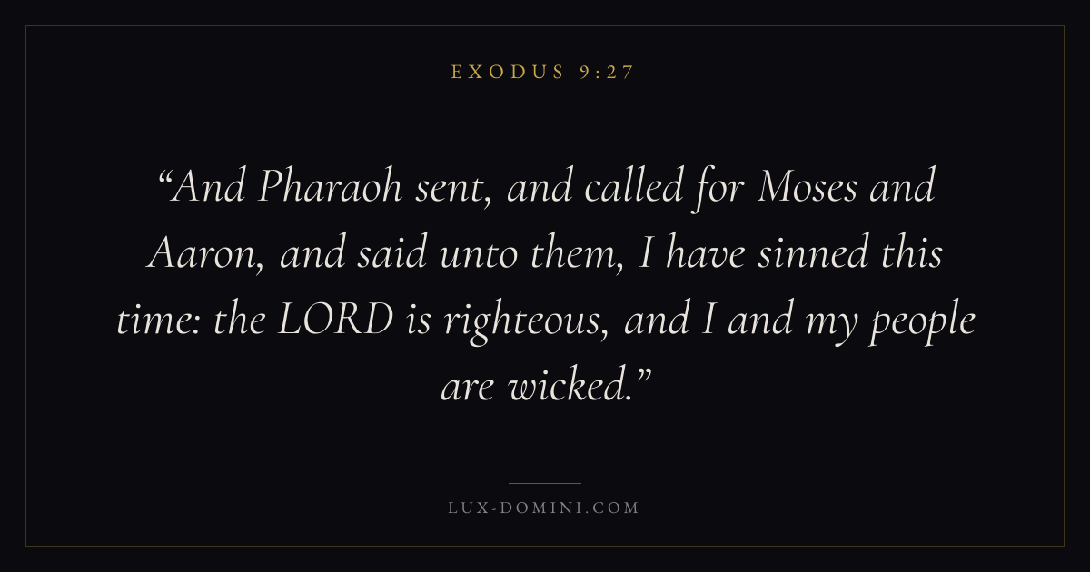 And Pharaoh sent, and called for Moses and Aaron, and said unto them, I have sinned this time: the LORD is righteous, and I and my people are wicked.