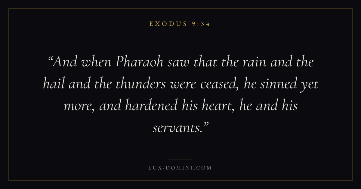 And when Pharaoh saw that the rain and the hail and the thunders were ceased, he sinned yet more, and hardened his heart, he and his servants.