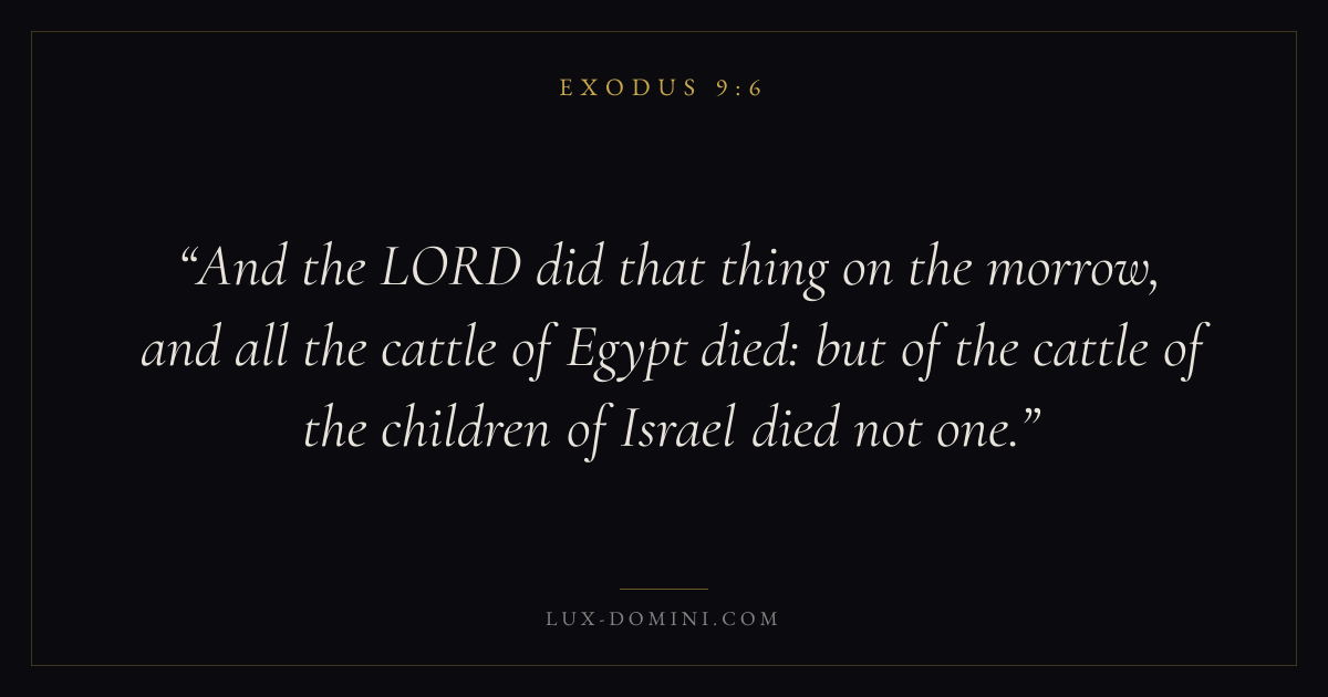 And the LORD did that thing on the morrow, and all the cattle of Egypt died: but of the cattle of the children of Israel died not one.