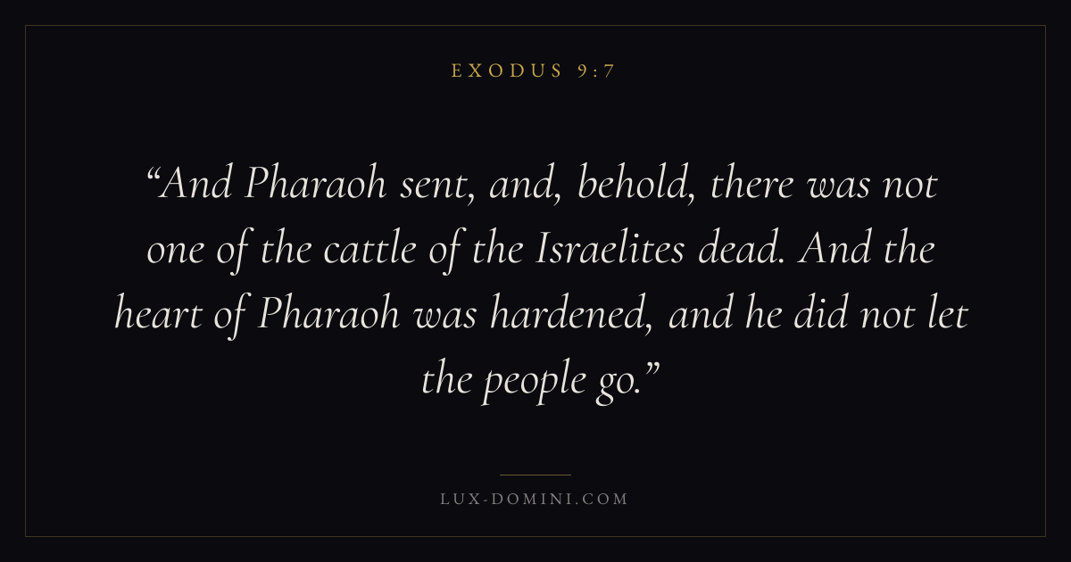 And Pharaoh sent, and, behold, there was not one of the cattle of the Israelites dead. And the heart of Pharaoh was hardened, and he did not let the people go.