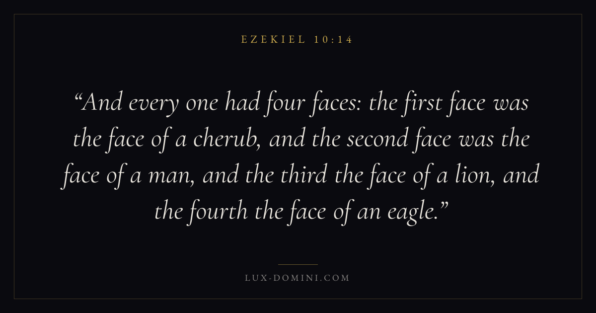 And every one had four faces: the first face was the face of a cherub, and the second face was the face of a man, and the third the face of a lion, and the fourth the face of an eagle.