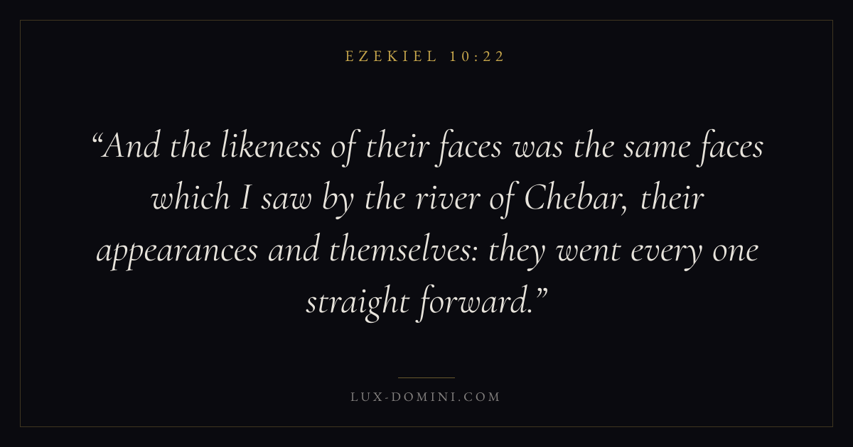 And the likeness of their faces was the same faces which I saw by the river of Chebar, their appearances and themselves: they went every one straight forward.