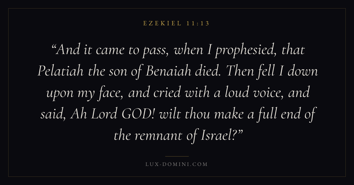 And it came to pass, when I prophesied, that Pelatiah the son of Benaiah died. Then fell I down upon my face, and cried with a loud voice, and said, Ah Lord GOD! wilt thou make a full end of the remnant of Israel?