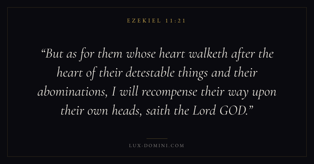But as for them whose heart walketh after the heart of their detestable things and their abominations, I will recompense their way upon their own heads, saith the Lord GOD.