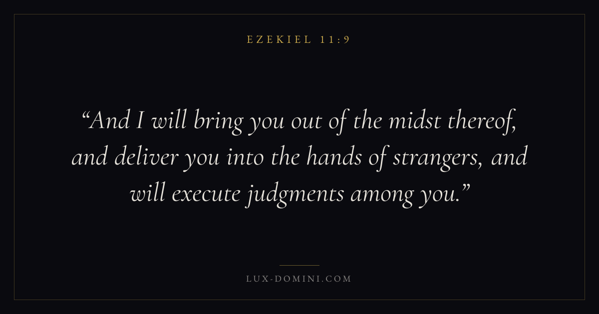And I will bring you out of the midst thereof, and deliver you into the hands of strangers, and will execute judgments among you.