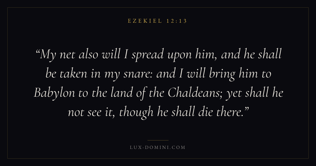 My net also will I spread upon him, and he shall be taken in my snare: and I will bring him to Babylon to the land of the Chaldeans; yet shall he not see it, though he shall die there.