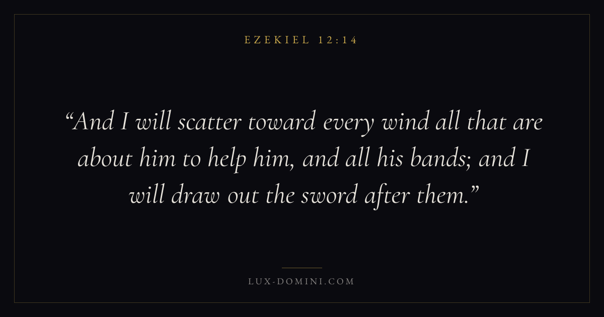 And I will scatter toward every wind all that are about him to help him, and all his bands; and I will draw out the sword after them.