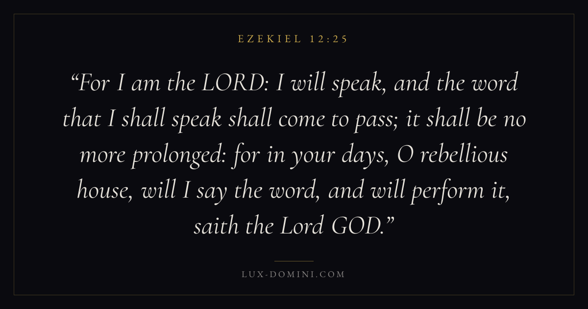 For I am the LORD: I will speak, and the word that I shall speak shall come to pass; it shall be no more prolonged: for in your days, O rebellious house, will I say the word, and will perform it, saith the Lord GOD.