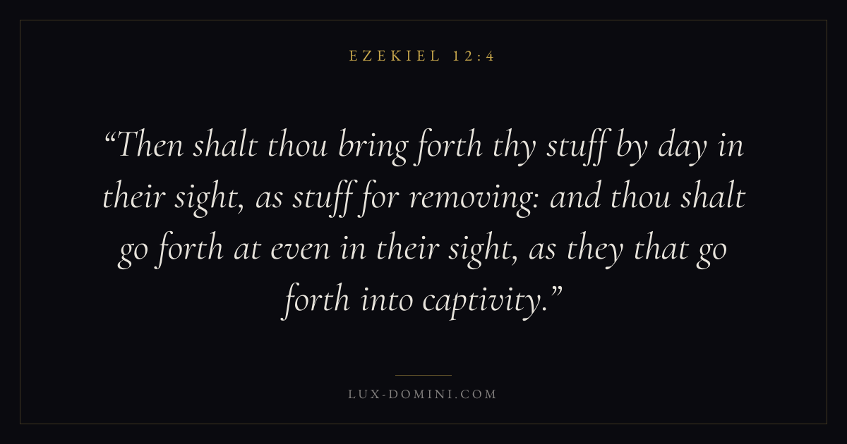 Then shalt thou bring forth thy stuff by day in their sight, as stuff for removing: and thou shalt go forth at even in their sight, as they that go forth into captivity.
