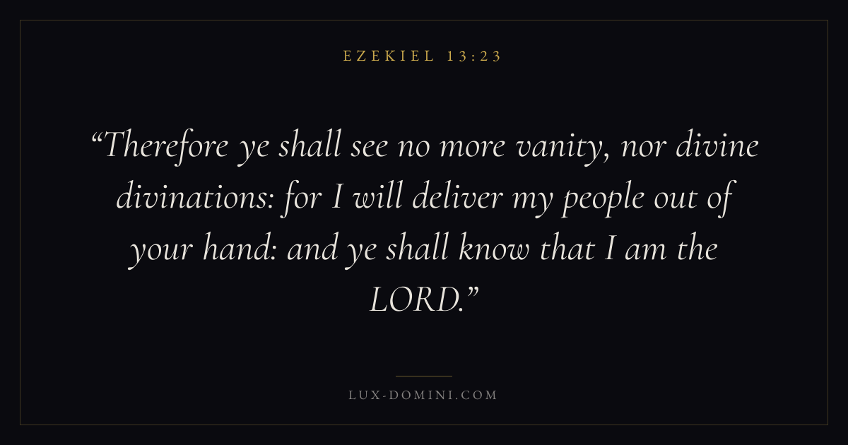 Therefore ye shall see no more vanity, nor divine divinations: for I will deliver my people out of your hand: and ye shall know that I am the LORD.