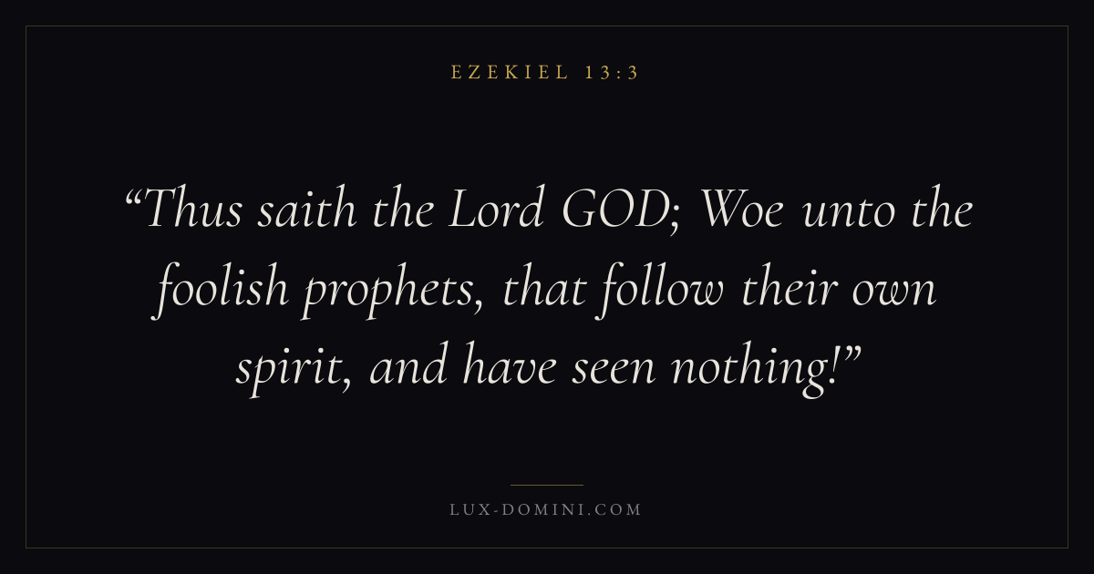 Thus saith the Lord GOD; Woe unto the foolish prophets, that follow their own spirit, and have seen nothing!