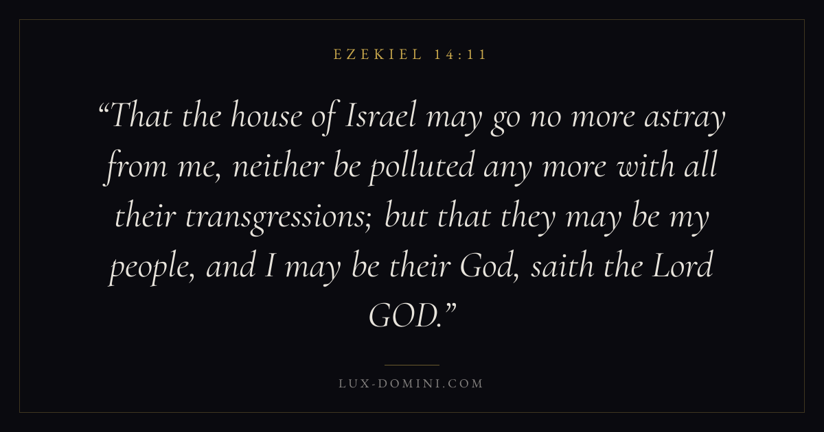 That the house of Israel may go no more astray from me, neither be polluted any more with all their transgressions; but that they may be my people, and I may be their God, saith the Lord GOD.