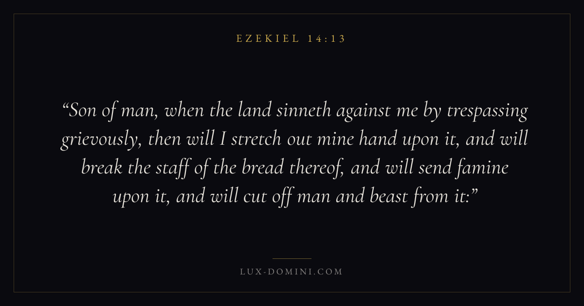 Son of man, when the land sinneth against me by trespassing grievously, then will I stretch out mine hand upon it, and will break the staff of the bread thereof, and will send famine upon it, and will cut off man and beast from it: