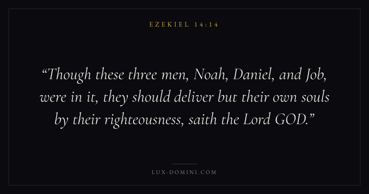 Though these three men, Noah, Daniel, and Job, were in it, they should deliver but their own souls by their righteousness, saith the Lord GOD.