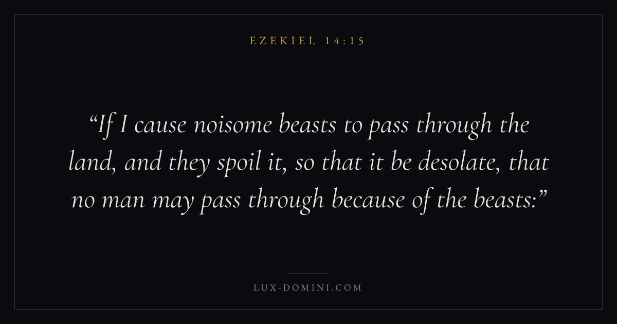 If I cause noisome beasts to pass through the land, and they spoil it, so that it be desolate, that no man may pass through because of the beasts: