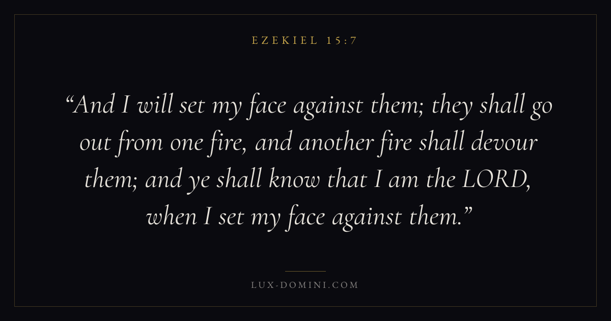 And I will set my face against them; they shall go out from one fire, and another fire shall devour them; and ye shall know that I am the LORD, when I set my face against them.