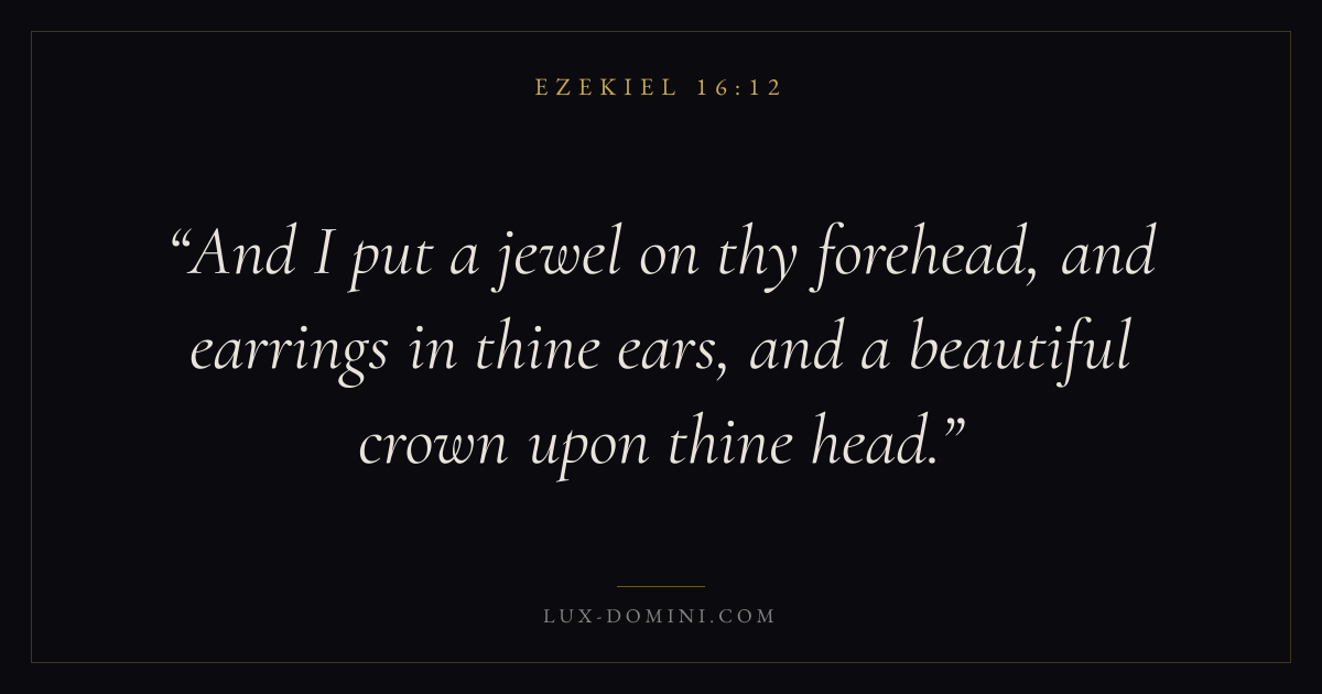 And I put a jewel on thy forehead, and earrings in thine ears, and a beautiful crown upon thine head.
