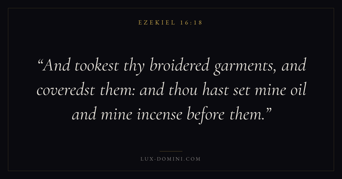 And tookest thy broidered garments, and coveredst them: and thou hast set mine oil and mine incense before them.