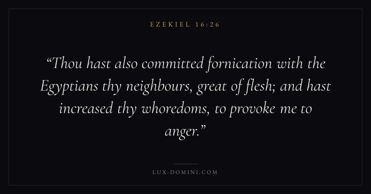 Thou hast also committed fornication with the Egyptians thy neighbours, great of flesh; and hast increased thy whoredoms, to provoke me to anger.