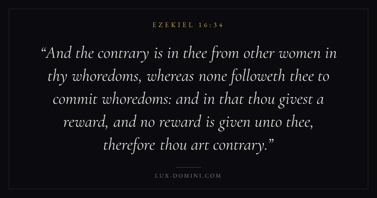 And the contrary is in thee from other women in thy whoredoms, whereas none followeth thee to commit whoredoms: and in that thou givest a reward, and no reward is given unto thee, therefore thou art contrary.