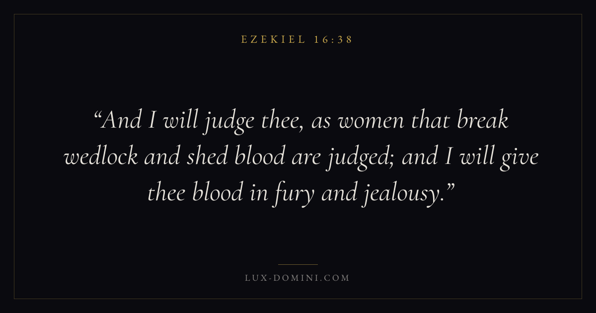 And I will judge thee, as women that break wedlock and shed blood are judged; and I will give thee blood in fury and jealousy.