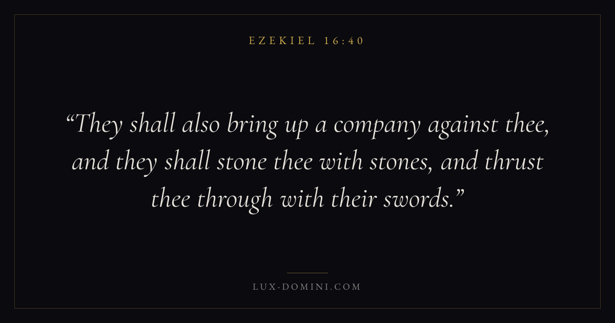 They shall also bring up a company against thee, and they shall stone thee with stones, and thrust thee through with their swords.