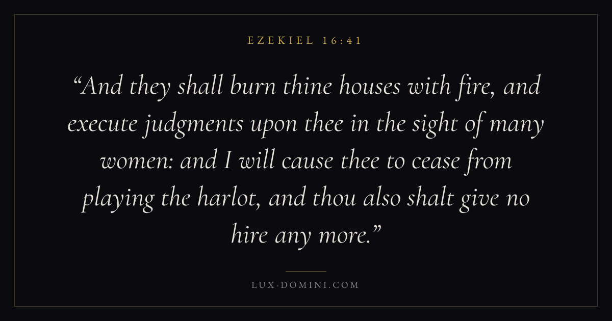 And they shall burn thine houses with fire, and execute judgments upon thee in the sight of many women: and I will cause thee to cease from playing the harlot, and thou also shalt give no hire any more.