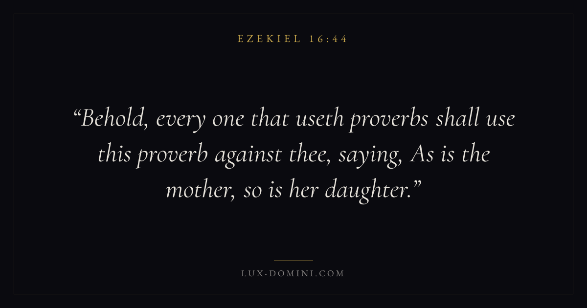 Behold, every one that useth proverbs shall use this proverb against thee, saying, As is the mother, so is her daughter.