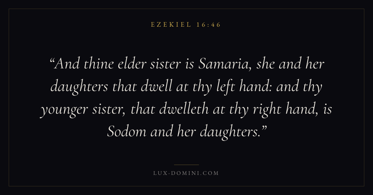 And thine elder sister is Samaria, she and her daughters that dwell at thy left hand: and thy younger sister, that dwelleth at thy right hand, is Sodom and her daughters.