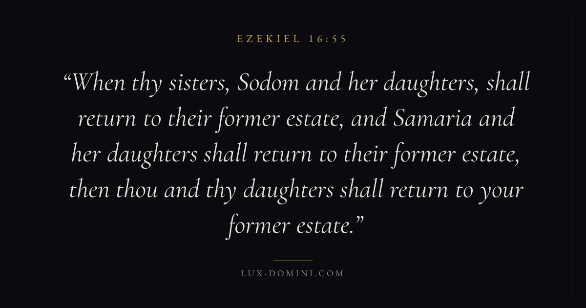 When thy sisters, Sodom and her daughters, shall return to their former estate, and Samaria and her daughters shall return to their former estate, then thou and thy daughters shall return to your former estate.