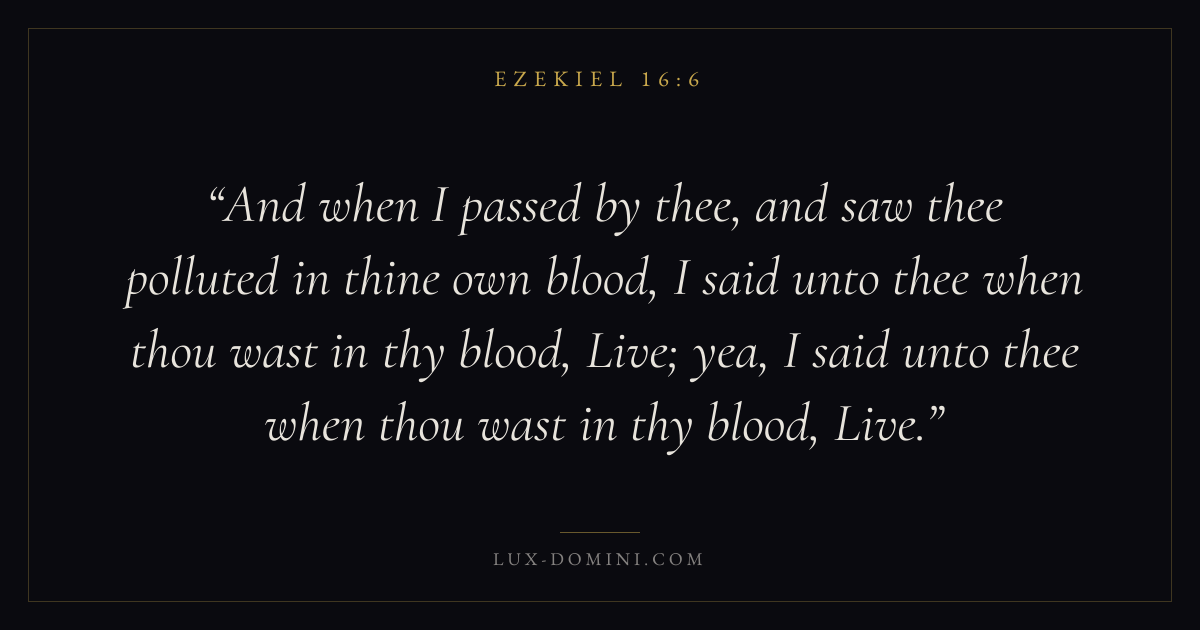 And when I passed by thee, and saw thee polluted in thine own blood, I said unto thee when thou wast in thy blood, Live; yea, I said unto thee when thou wast in thy blood, Live.