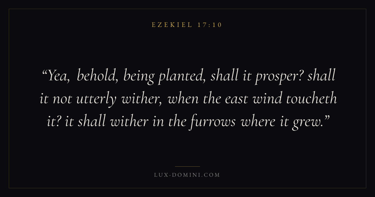 Yea, behold, being planted, shall it prosper? shall it not utterly wither, when the east wind toucheth it? it shall wither in the furrows where it grew.