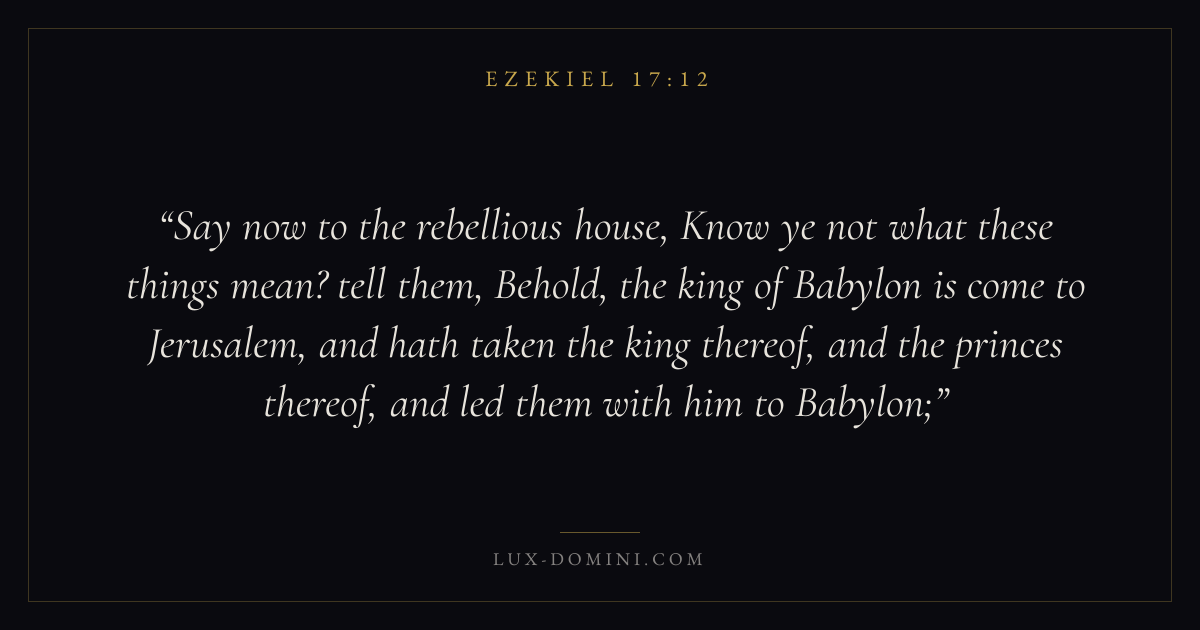 Say now to the rebellious house, Know ye not what these things mean? tell them, Behold, the king of Babylon is come to Jerusalem, and hath taken the king thereof, and the princes thereof, and led them with him to Babylon;