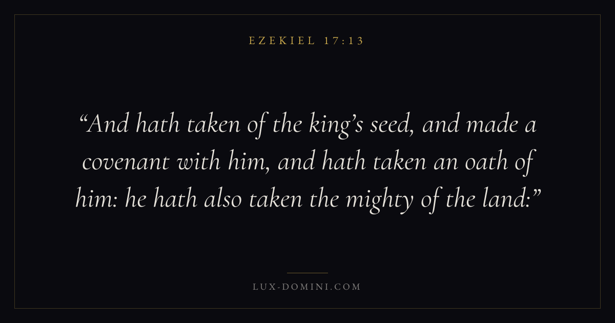 And hath taken of the king’s seed, and made a covenant with him, and hath taken an oath of him: he hath also taken the mighty of the land: