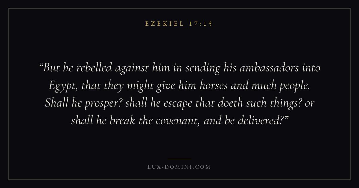 But he rebelled against him in sending his ambassadors into Egypt, that they might give him horses and much people. Shall he prosper? shall he escape that doeth such things? or shall he break the covenant, and be delivered?