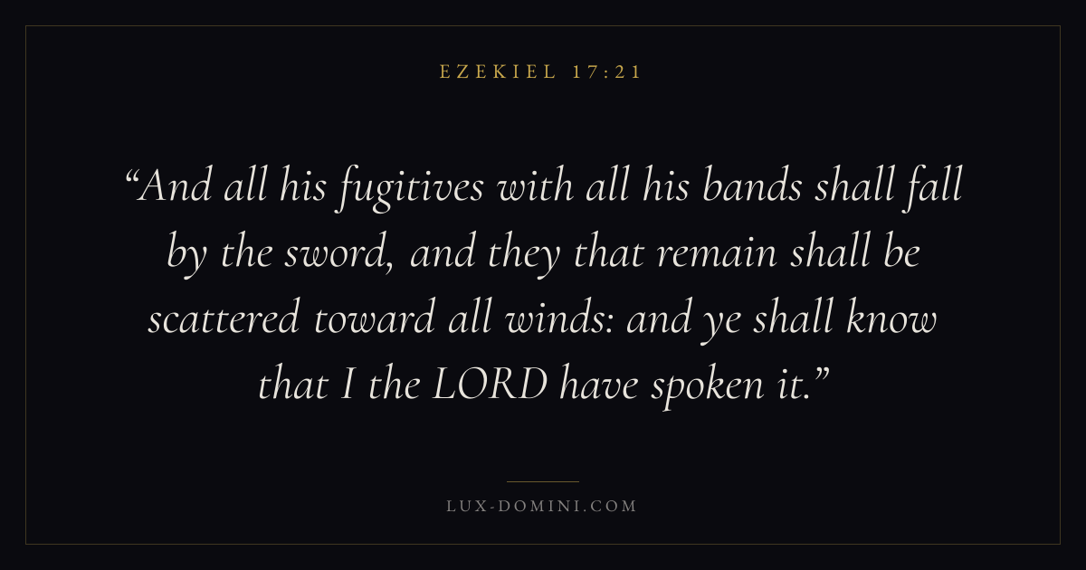 And all his fugitives with all his bands shall fall by the sword, and they that remain shall be scattered toward all winds: and ye shall know that I the LORD have spoken it.