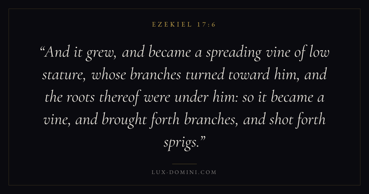And it grew, and became a spreading vine of low stature, whose branches turned toward him, and the roots thereof were under him: so it became a vine, and brought forth branches, and shot forth sprigs.