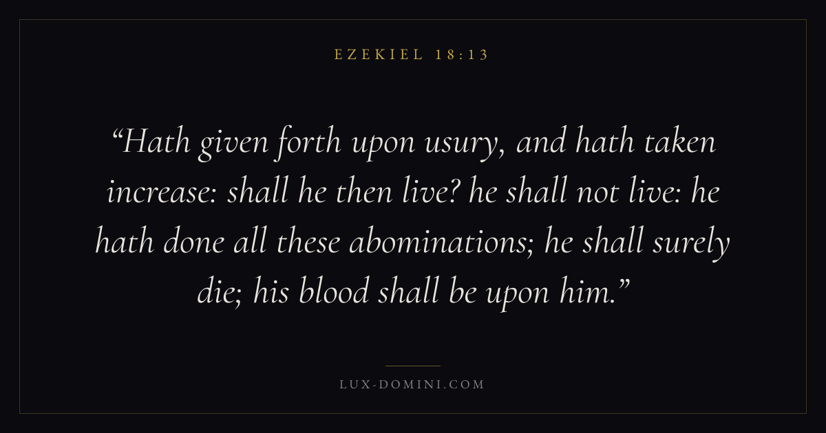 Hath given forth upon usury, and hath taken increase: shall he then live? he shall not live: he hath done all these abominations; he shall surely die; his blood shall be upon him.
