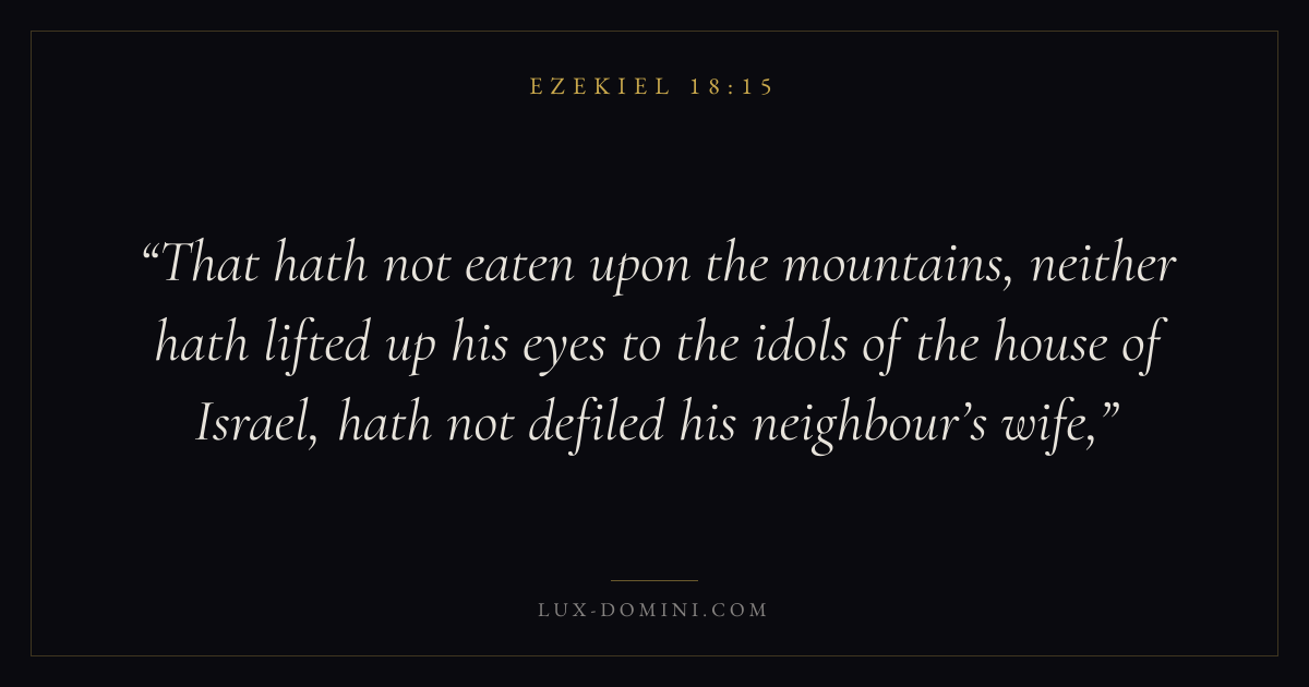 That hath not eaten upon the mountains, neither hath lifted up his eyes to the idols of the house of Israel, hath not defiled his neighbour’s wife,