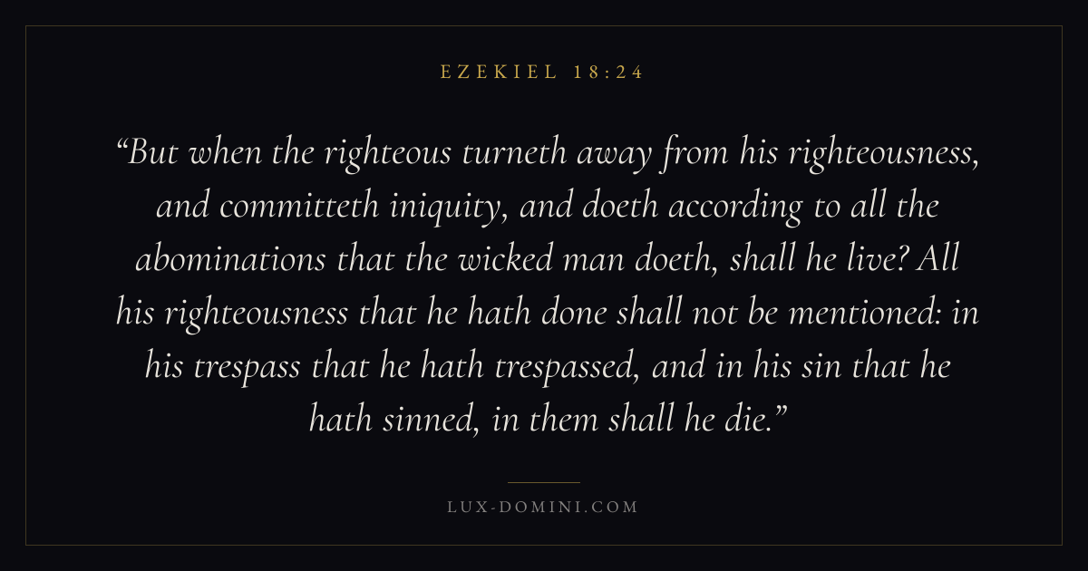 But when the righteous turneth away from his righteousness, and committeth iniquity, and doeth according to all the abominations that the wicked man doeth, shall he live? All his righteousness that he hath done shall not be mentioned: in his trespass that he hath trespassed, and in his sin that he hath sinned, in them shall he die.